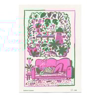 Risograph printed with Earthbound Press on Recycled Context Natural 250gsm, in Green & Fluorescent Pink, A5 dimensions, edition of 100.